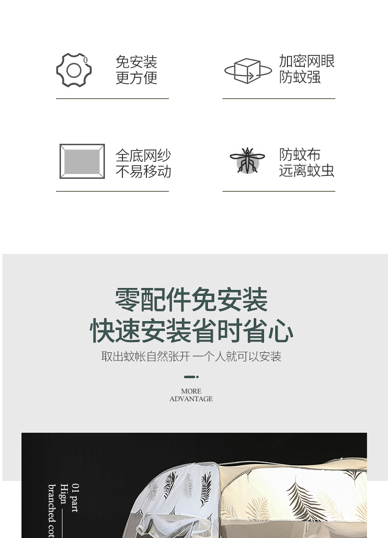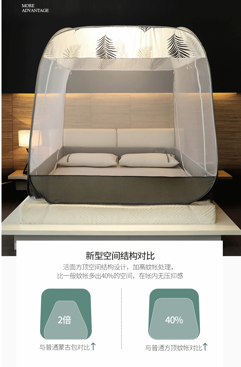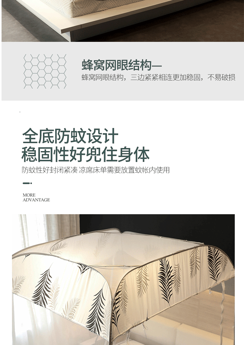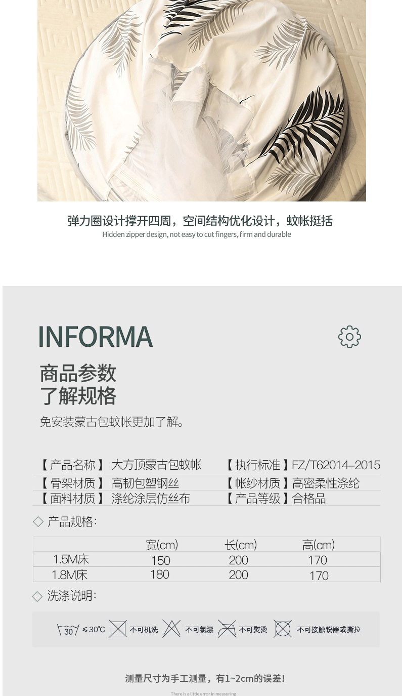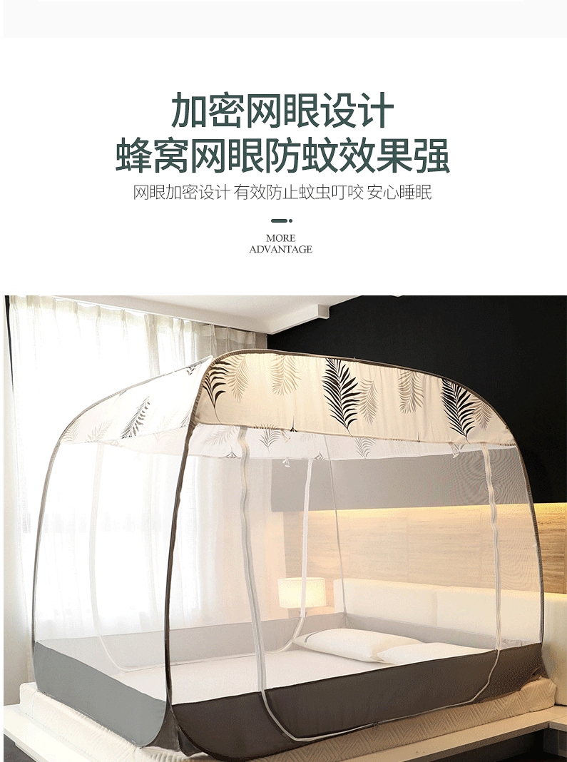 商品名称:蚊帐 三开门免安装蒙古包钢丝蚊帐加密可折叠坐床式蚊帐 1.8米床