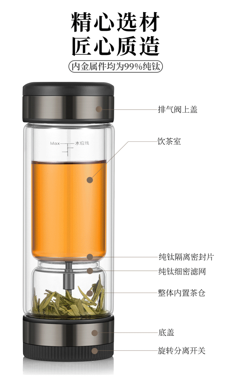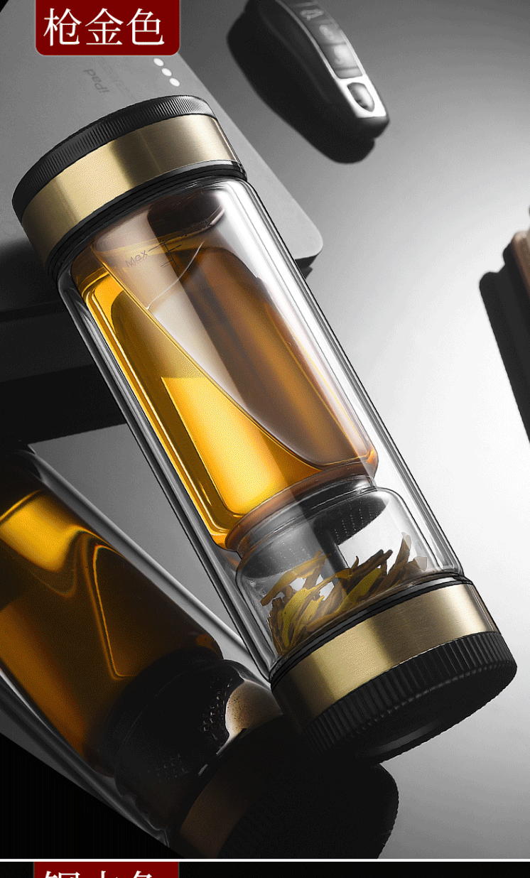 茶水分离杯 双层玻璃茶杯 CZL-006-70T