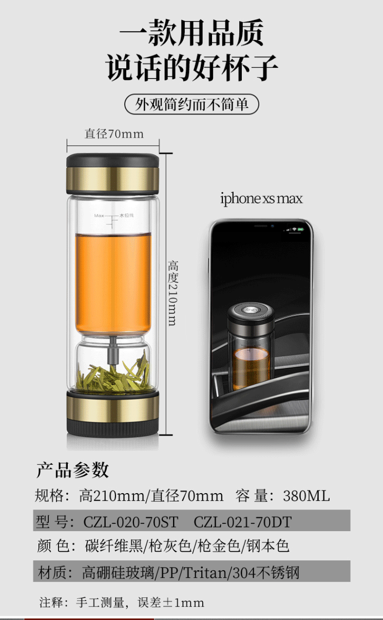 商品名称:茶水分离杯 双层玻璃茶杯 CZL-006-70T