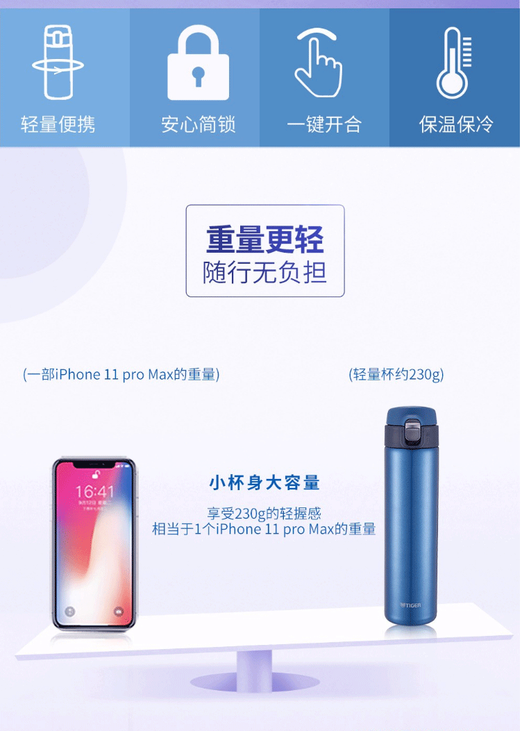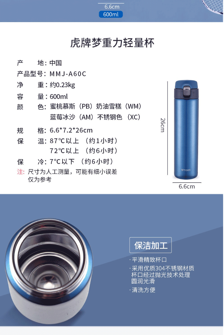 商品名称:虎牌(Tiger)保温杯 不锈钢真空杯 MMJ-A60C-XC不锈钢色600ml