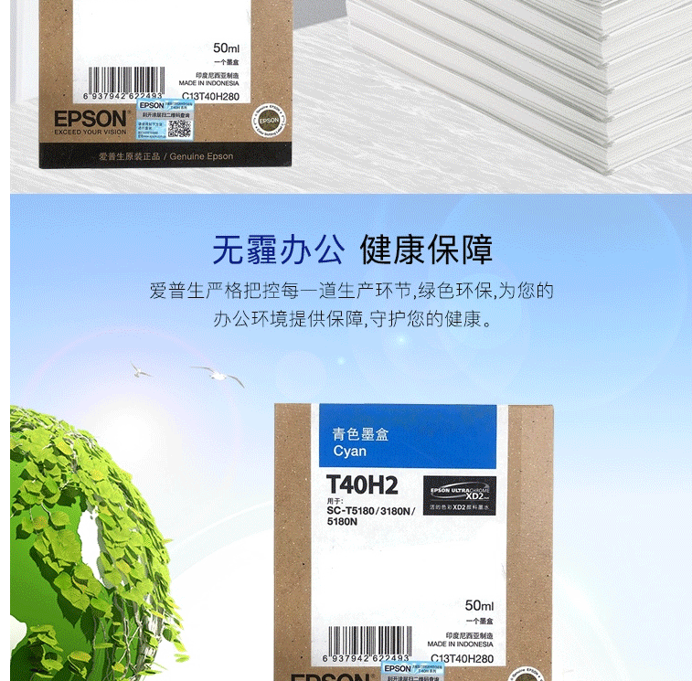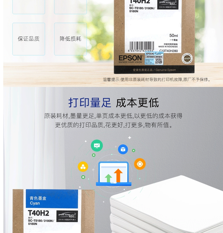 爱普生(EPSON)C13T40H280 青色墨水 (适用于SC-T3180N/3180M/5180/5180N机型)约50ml