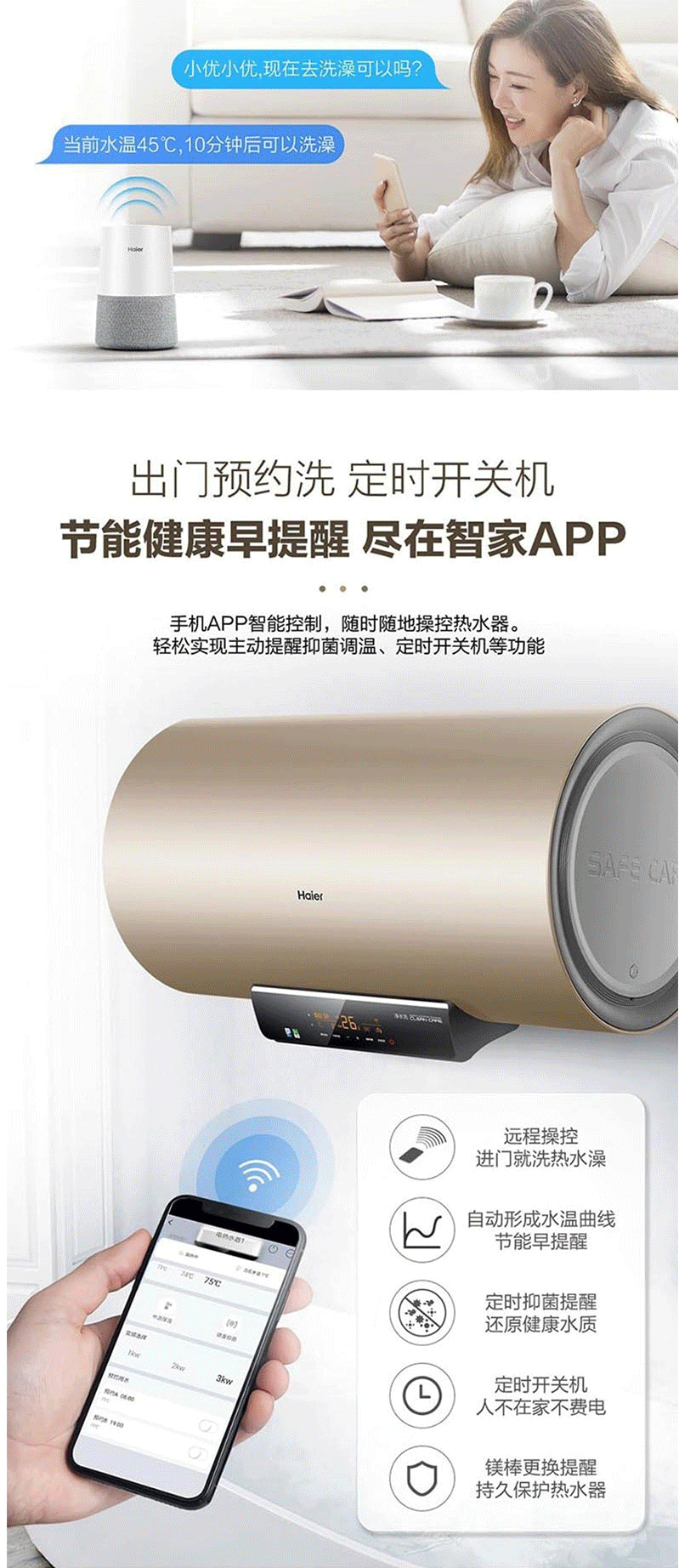 商品名称:海尔(Haier) 热水器50升 大功率速热大水量 一级能效 ES50H-D6S(2U1)(含安装)