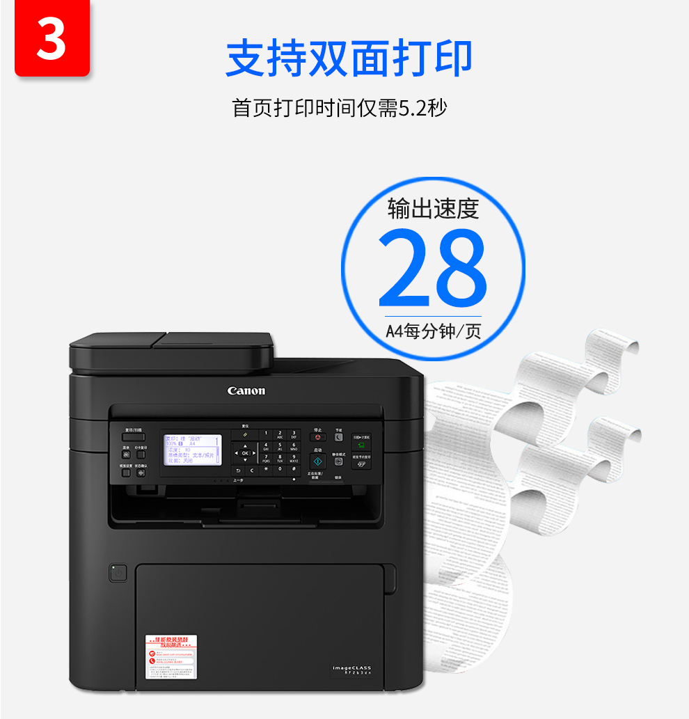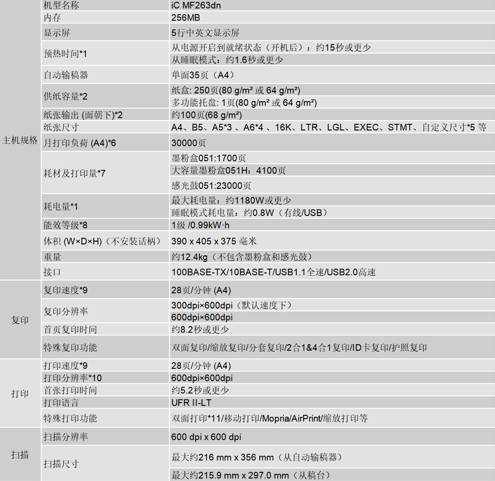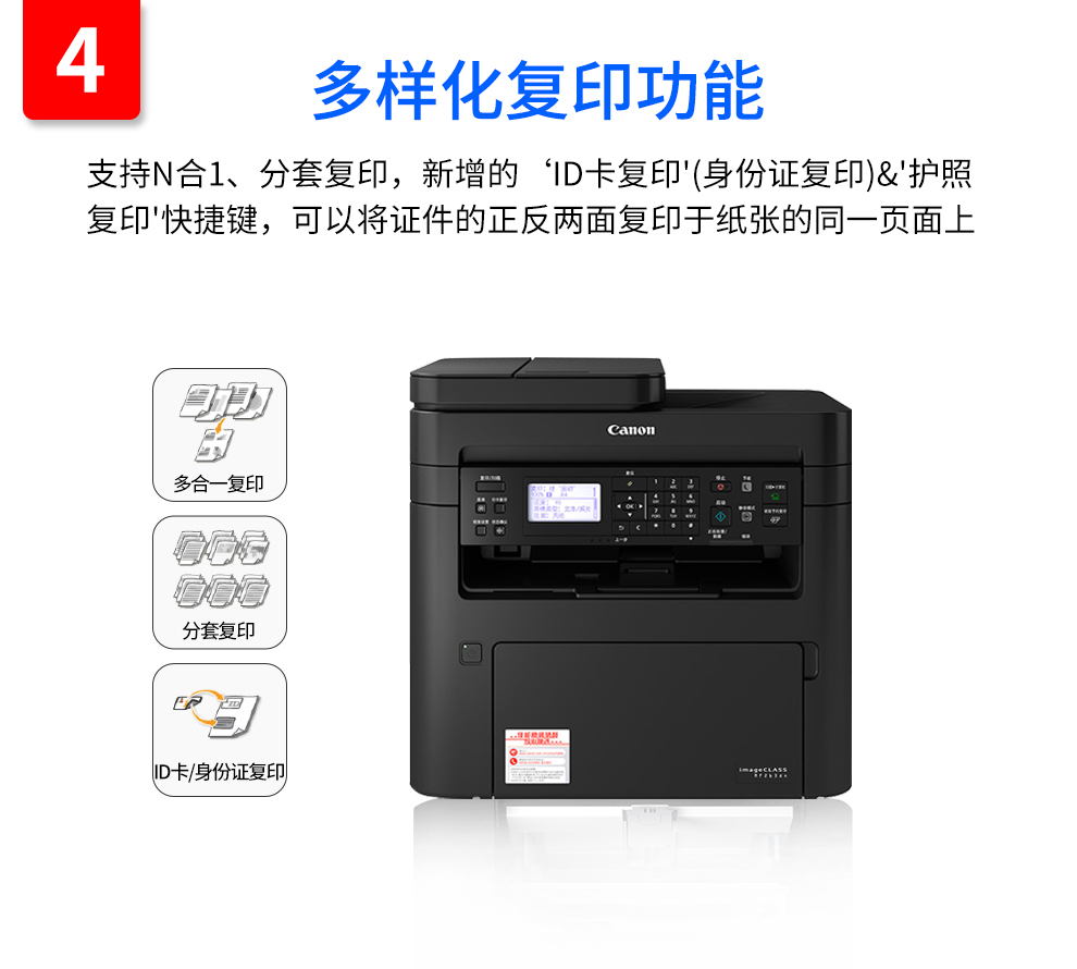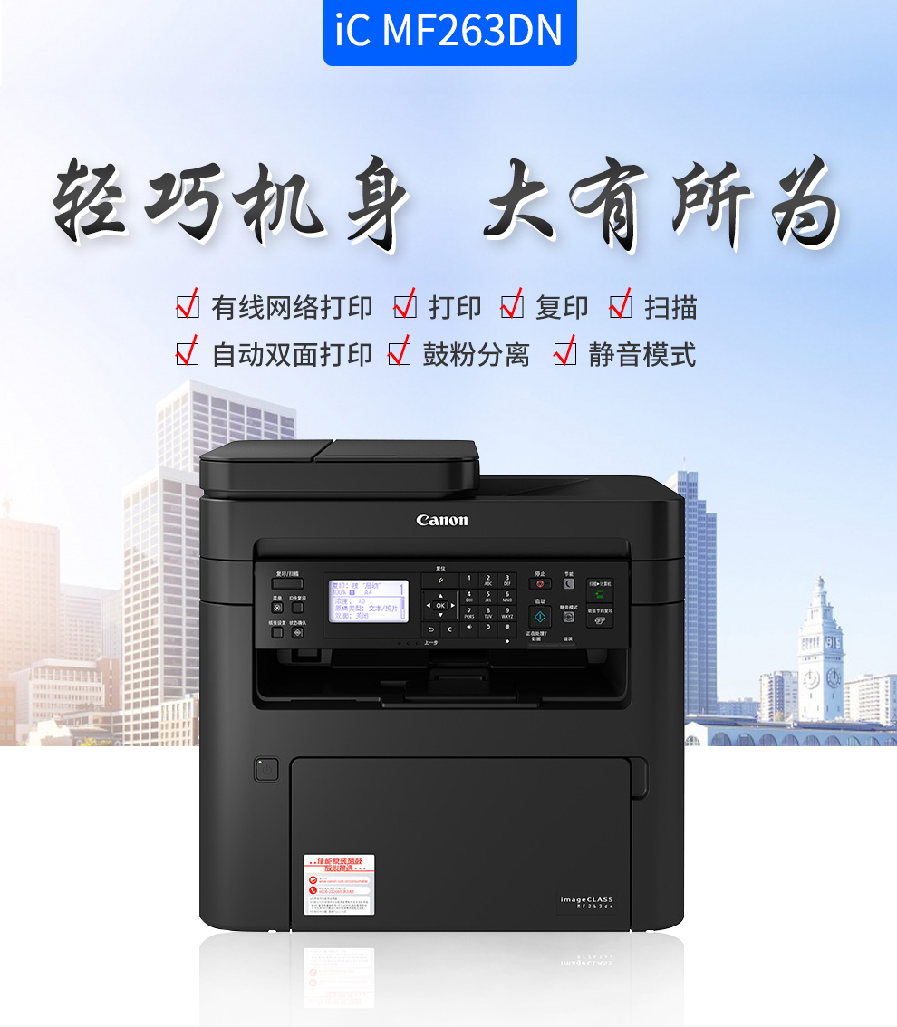 商品名称:佳能(CANON)MF263DN黑白激光多功能一体机 A4幅面 标配复印、打印、扫描三合一 自动双面打印 有线网络打印