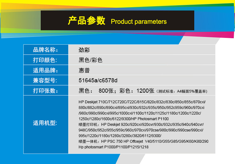 商品名称:劲彩 51645a墨盒 适用惠普Deskjet 710C/815C/990c/870cxi/990cxi/9300/Photosmart P1100 黑色