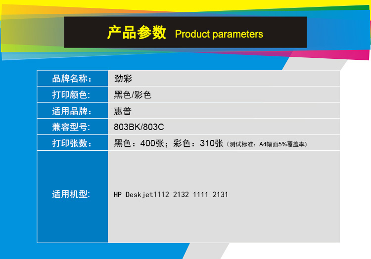商品名称:劲彩 803XL墨盒 适用惠普Deskjet1112/2132/1111/2131 黑色