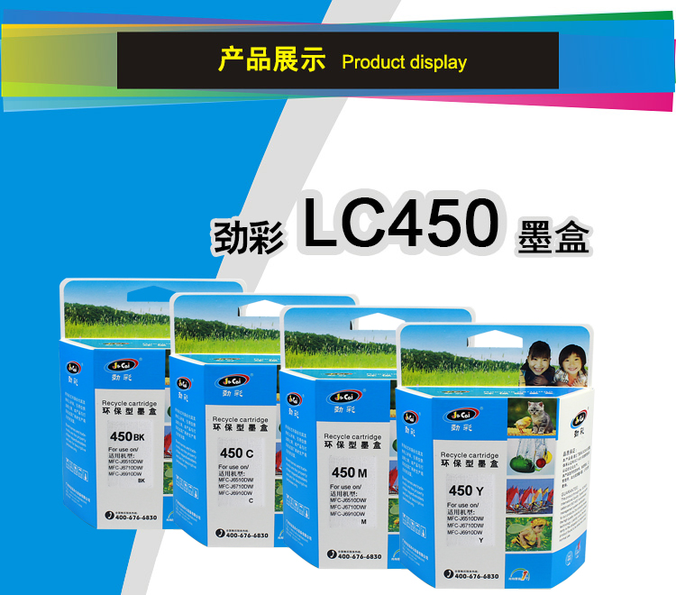 商品名称:劲彩 LC450墨盒 适用兄弟MFC-J6510DW/J6710DW/5910DW/J430W/J625DW 黄色