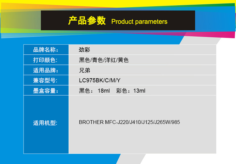 商品名称:劲彩 LC975墨盒 适用兄弟 MFC-J220/J410/J125/J265W 红色