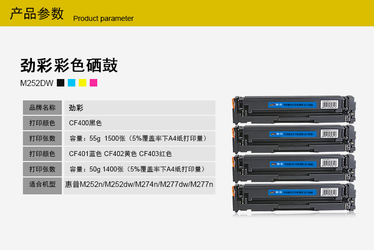 商品名称:劲彩CF401A硒鼓 适用惠普M252n M252dw M274n M277dw M278n 蓝色