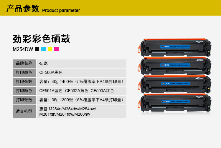 商品名称:劲彩CF500A硒鼓 适用惠普 M254n/dw/nw M281fdn M281 黑色