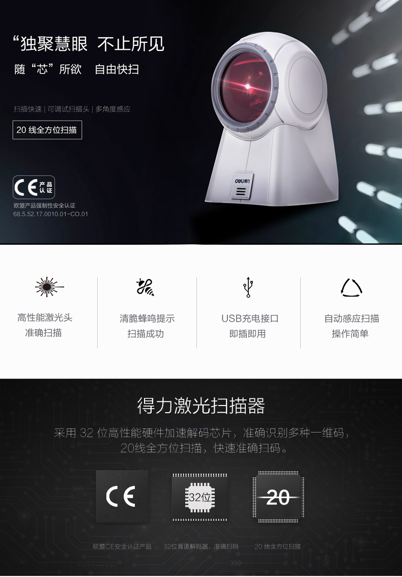 商品名称:得力14884条码扫描器 平台式扫描器(白色)