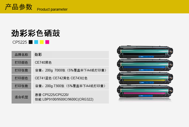 商品名称:劲彩CE740A硒鼓 适用惠普 CP5225 CP5225dn CP5220 佳能CRG322 黑色