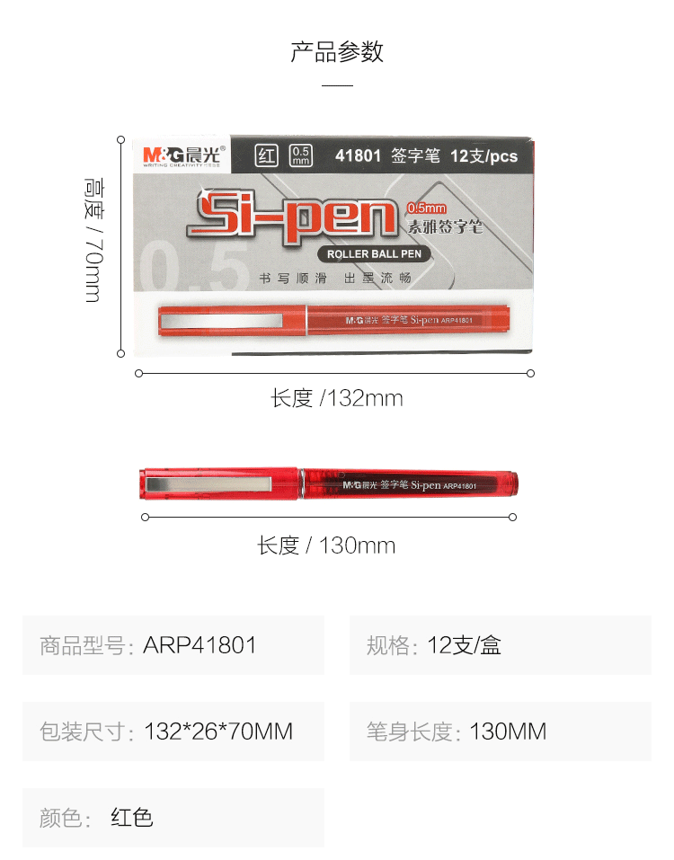 商品名称:晨光直液式逸品签字笔ARP41801红0.5 12支/盒