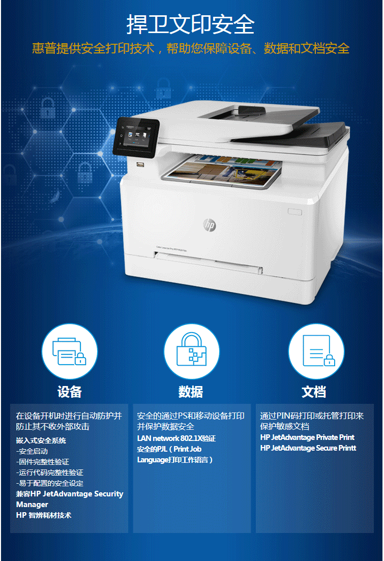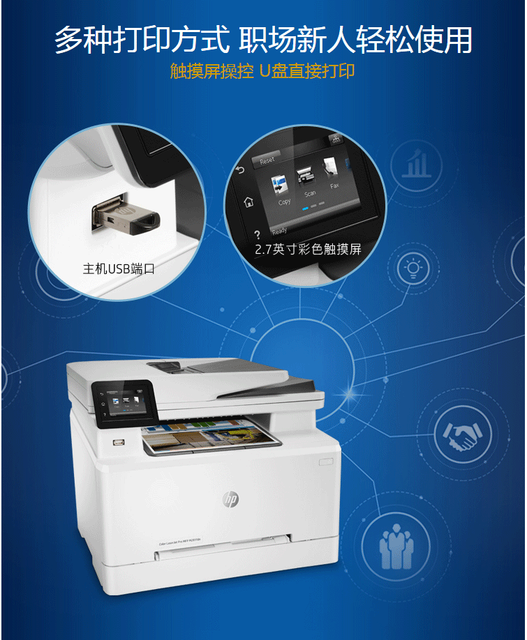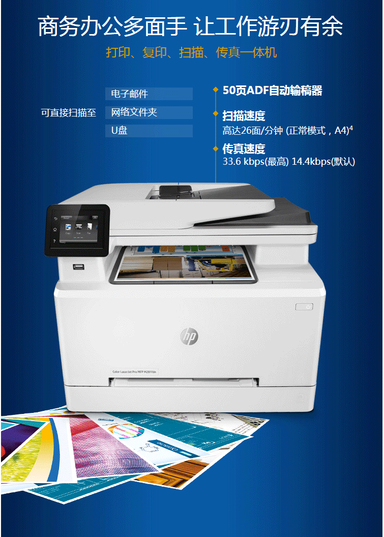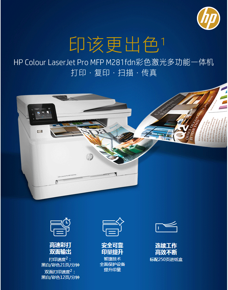 惠普(HP)Colour LaserJet Pro M281fdn彩色激光多功能一体机(打印 复印 扫描 传真)