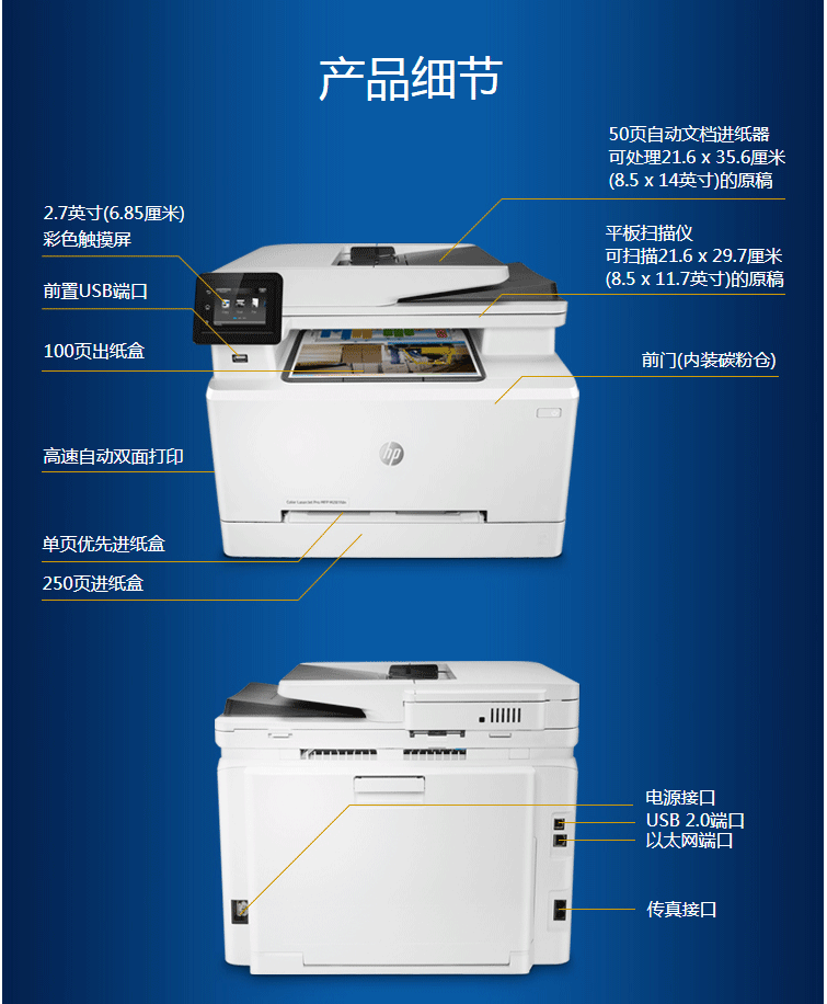 商品名称:惠普(HP)Colour LaserJet Pro M281fdn彩色激光多功能一体机(打印 复印 扫描 传真)