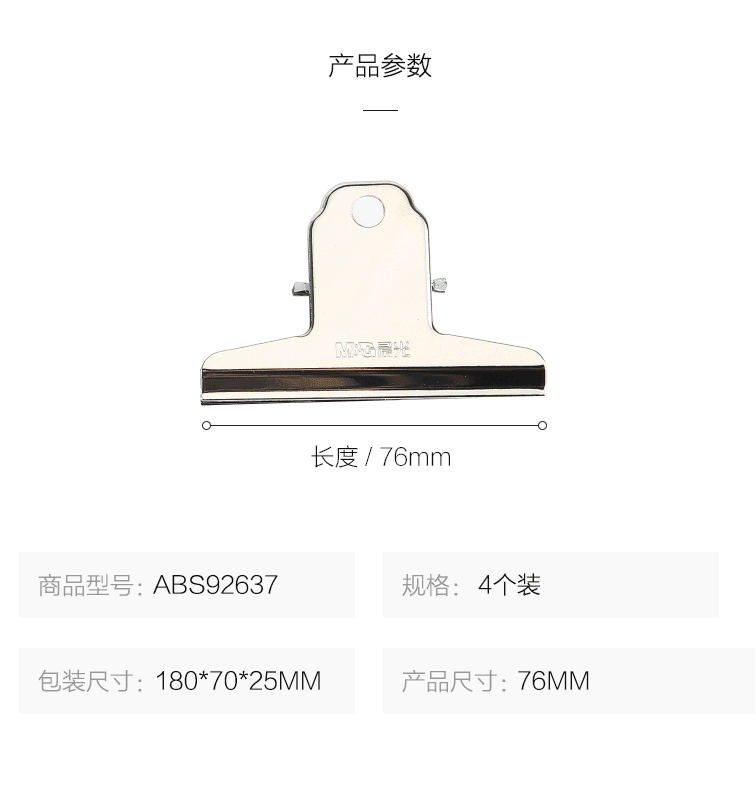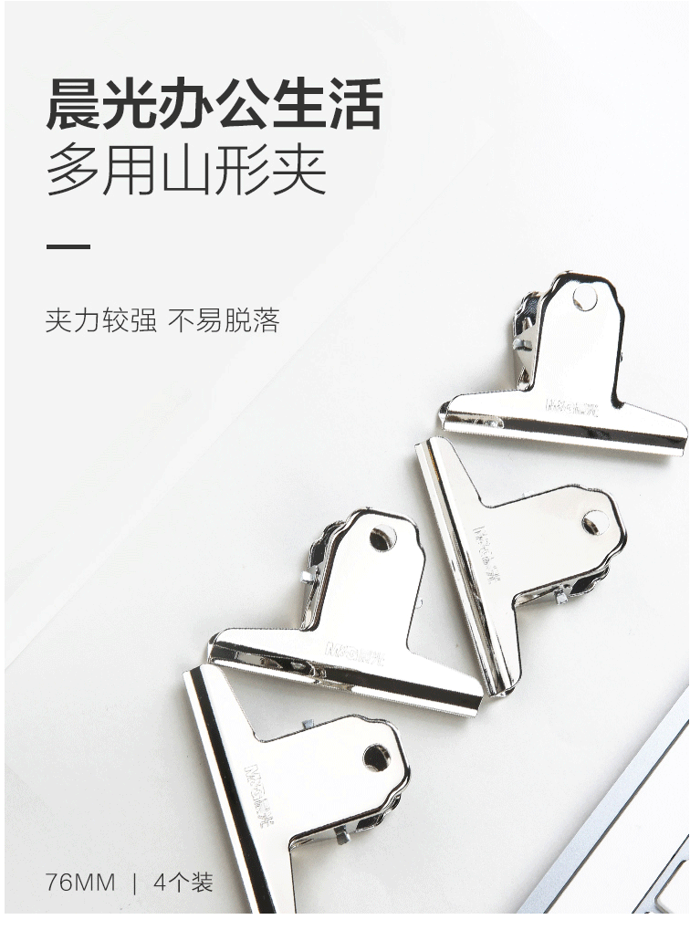 商品名称:晨光(M&G) 76mm山形票夹 办公金属财务票据夹 不锈钢夹子画板夹 4个装ABS92637(袋)