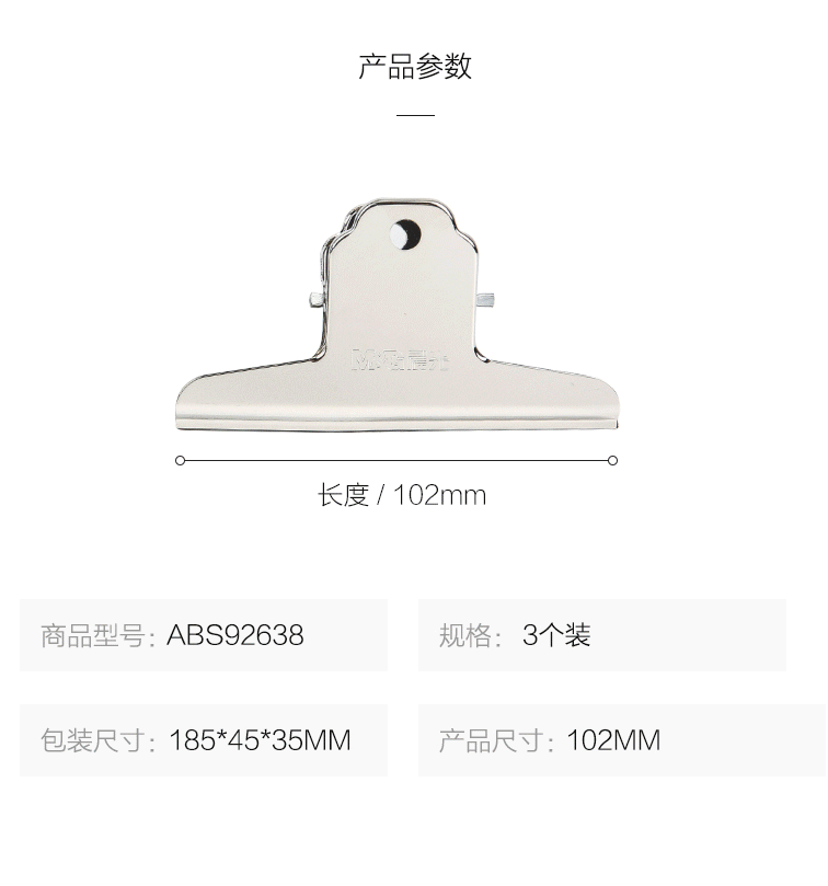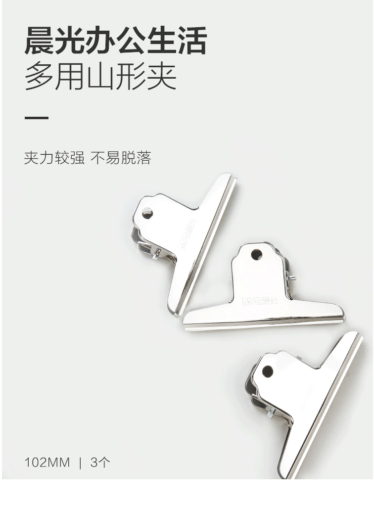 商品名称:晨光(M&G) 102mm山形票夹 办公金属财务票据夹 不锈钢夹子画板夹 3个装ABS92638(袋)