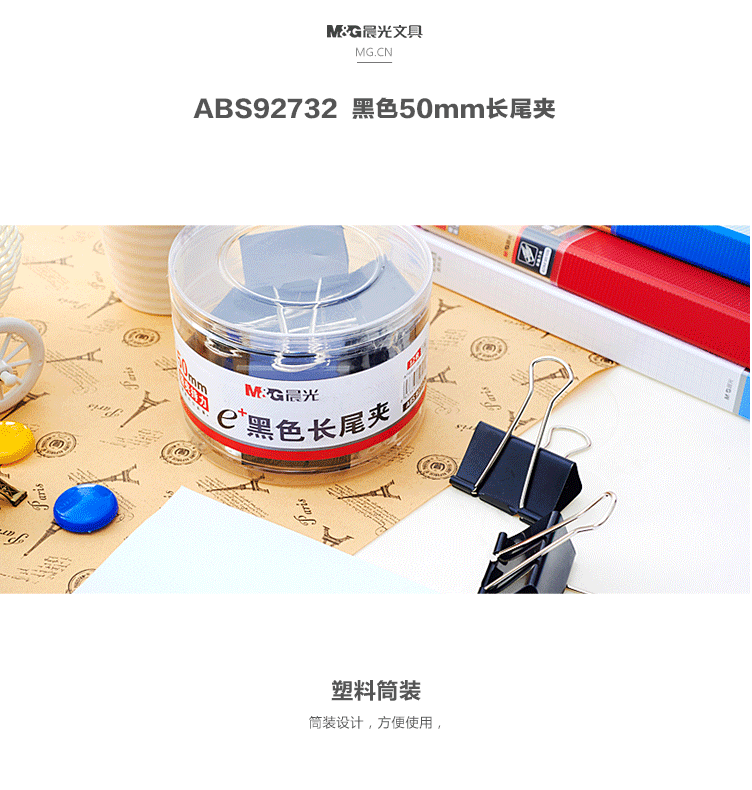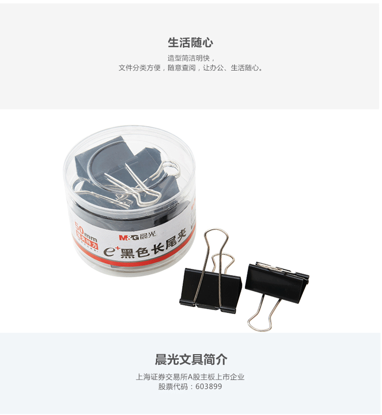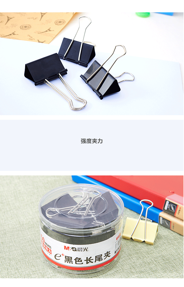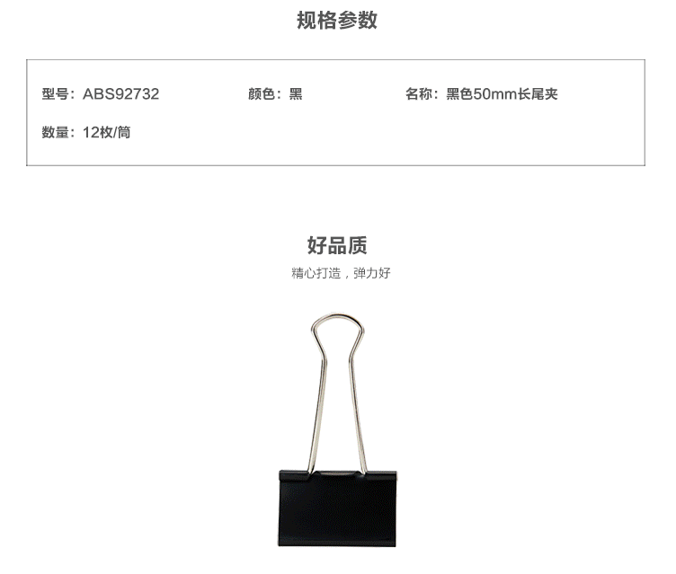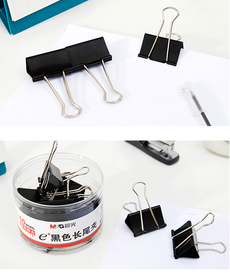 商品名称:晨光(M&G) 50mm黑色长尾夹 金属票据夹 Eplus系列办公燕尾夹 12只/罐ABS92732