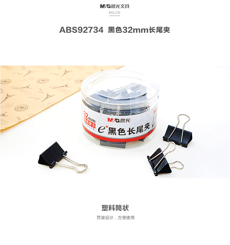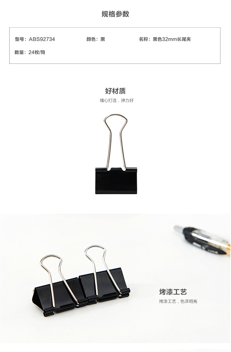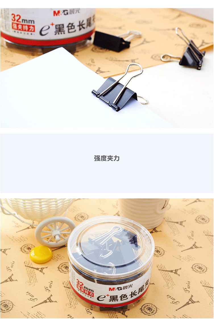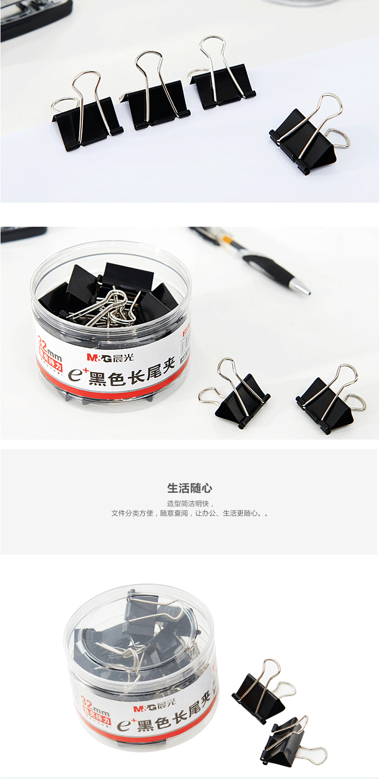 商品名称:晨光(M&G) 32mm黑色长尾夹 金属票据夹 Eplus系列办公燕尾夹 24只/罐ABS92734