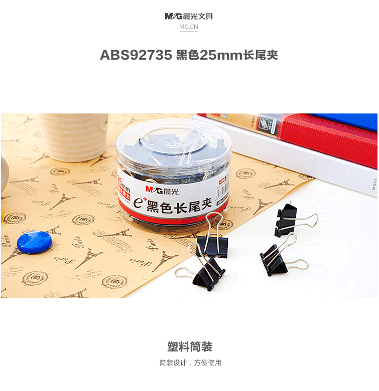 商品名称:晨光(M&G) 25mm黑色长尾夹 金属票据夹 Eplus系列办公燕尾夹 48只/罐ABS92735