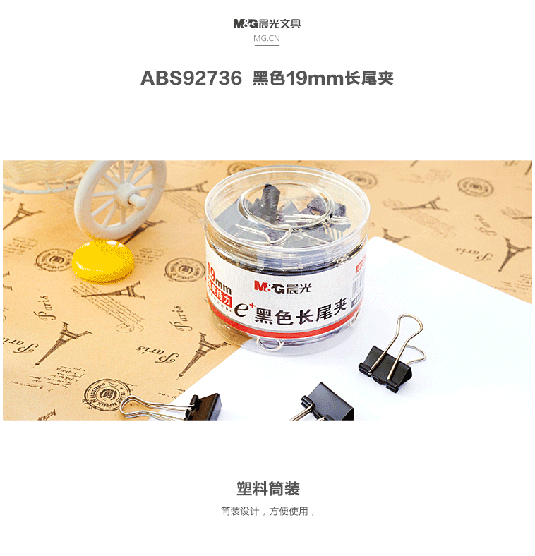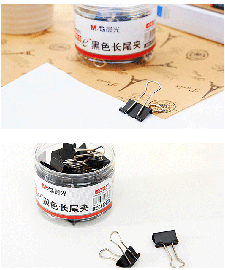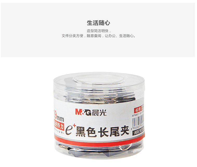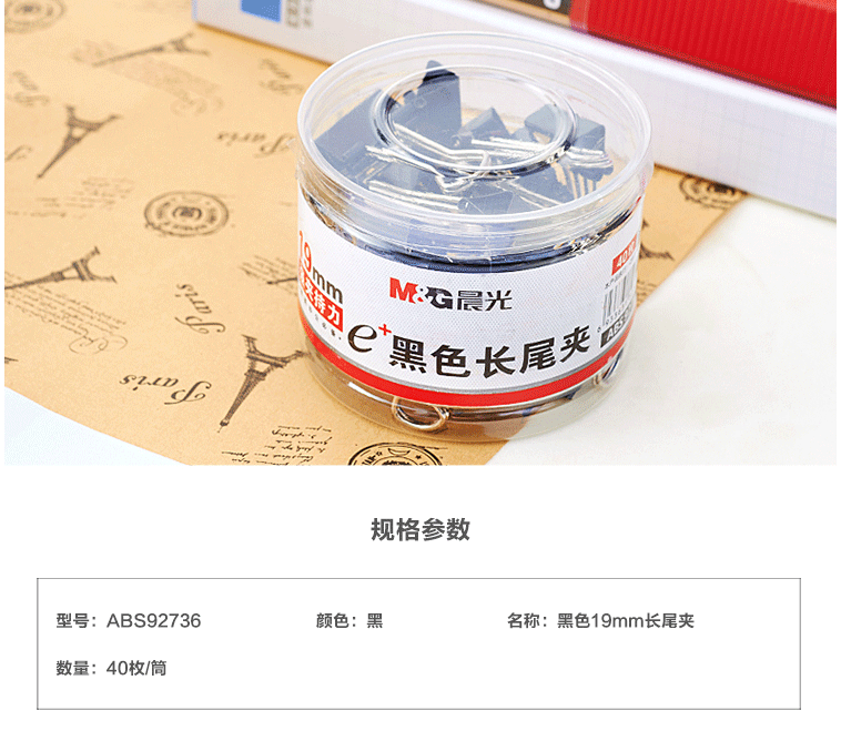 商品名称:晨光(M&G) 19mm黑色长尾夹 金属票据夹 Eplus系列办公燕尾夹 40只/罐ABS92736