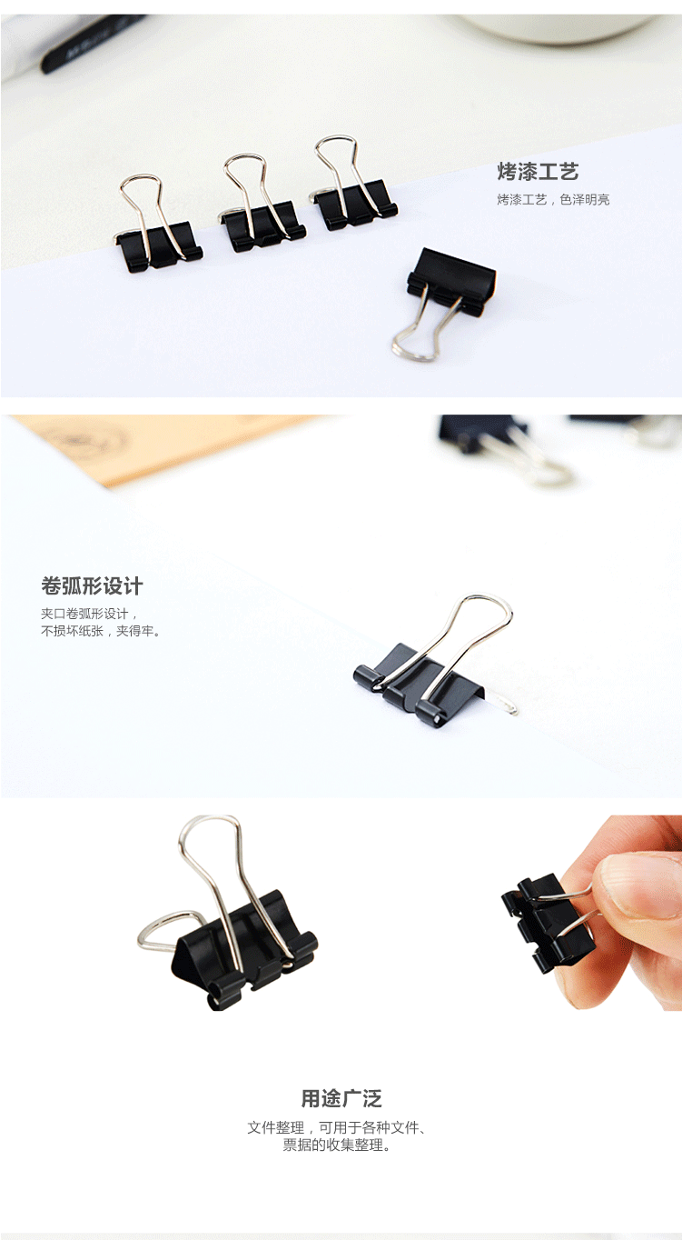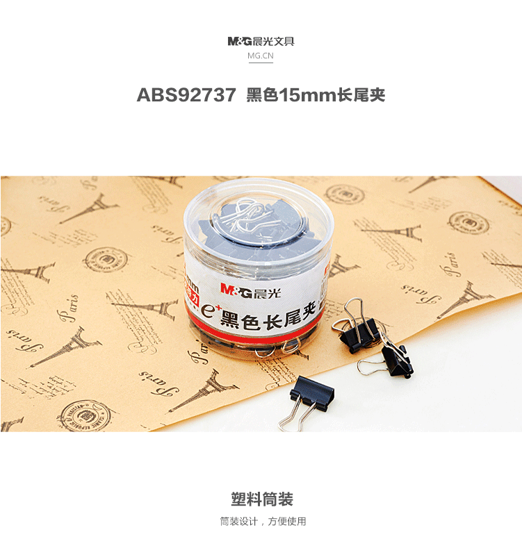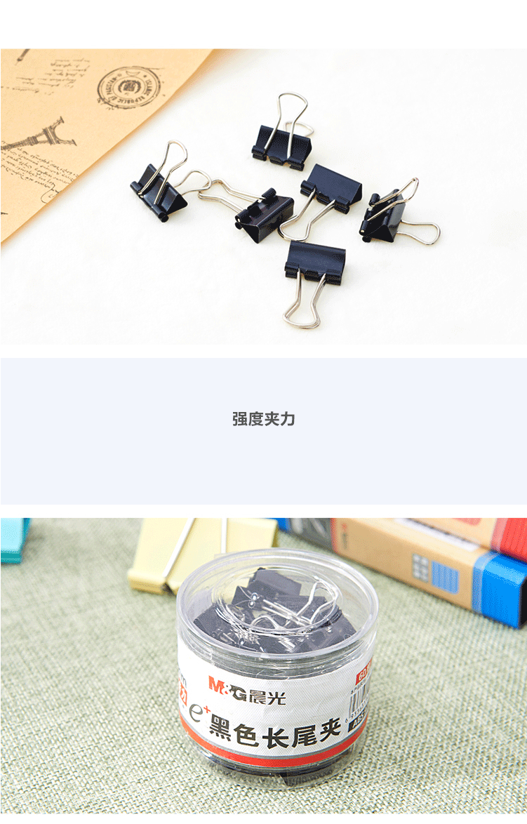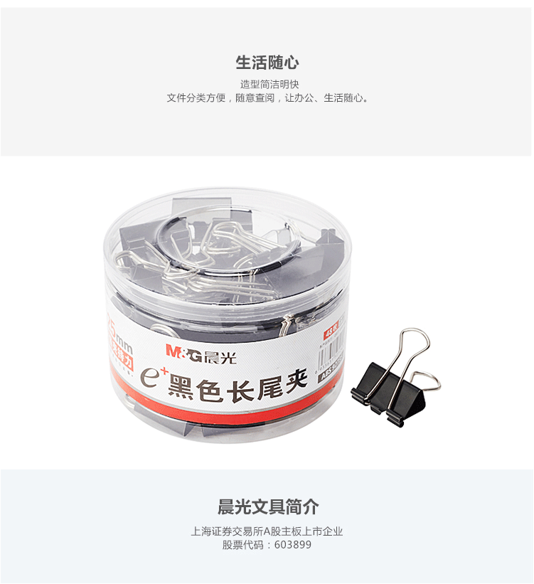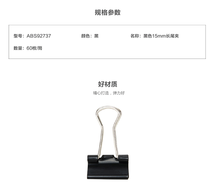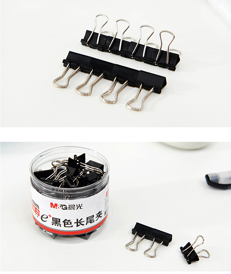 商品名称:晨光(M&G) 15mm黑色长尾夹 金属票据夹 Eplus系列办公燕尾夹 60只/罐ABS92737