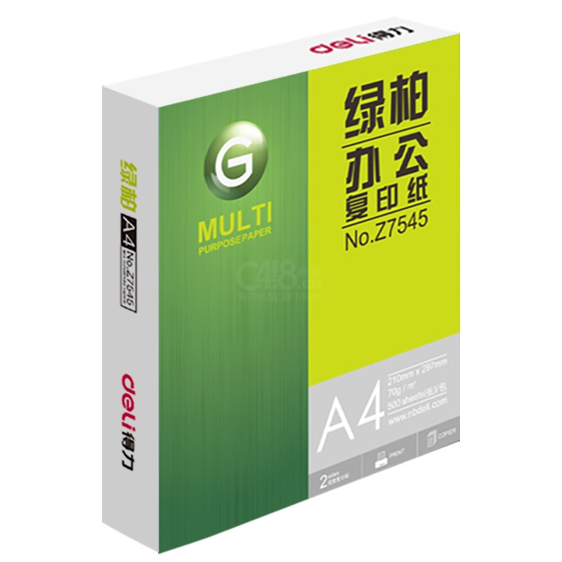 商品名称:得力绿柏复印纸A4-70g Z7547 500张*8包/箱