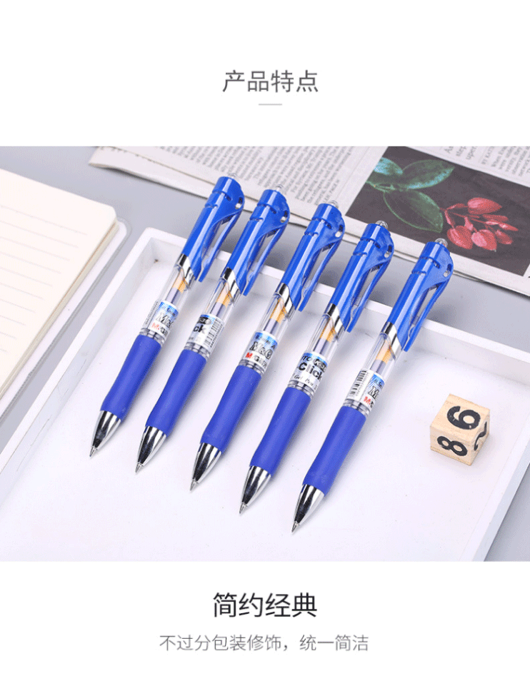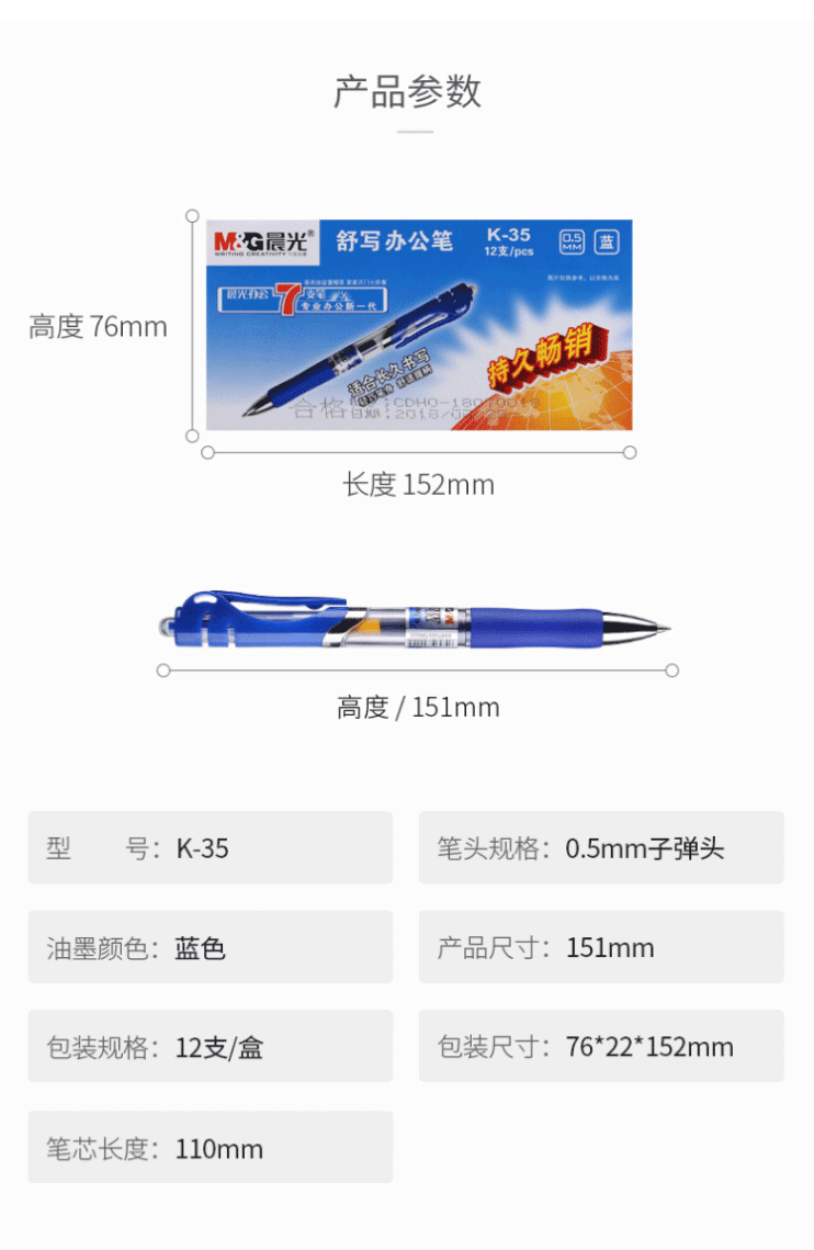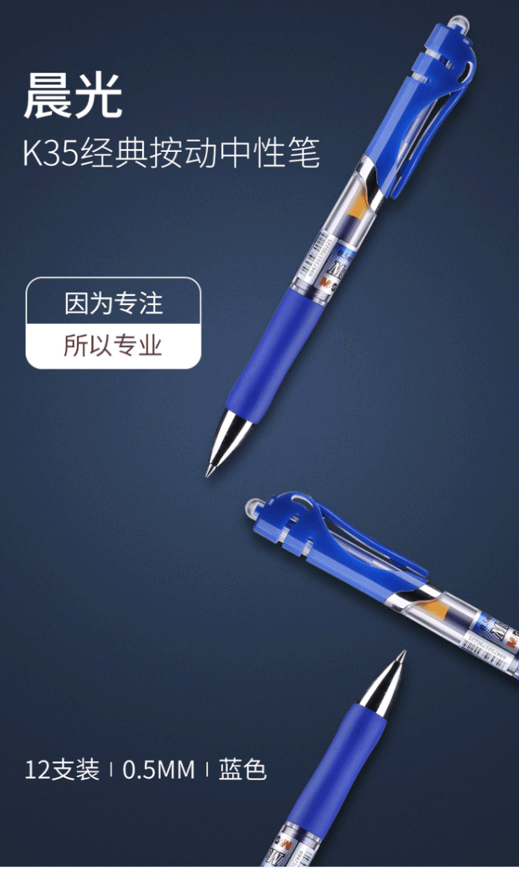 商品名称:晨光(M&G) 0.5mm中性笔 经典按动子弹头签字笔 12支/盒 K35蓝色