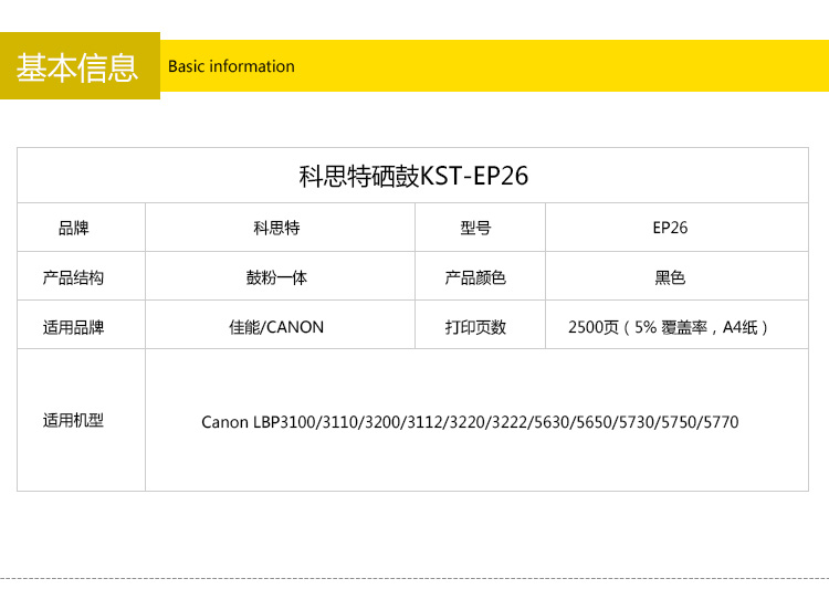 商品名称:科思特 EP26硒鼓 适用佳能27 LBP3100 3110 3200 3112 3220 5650 5730 5750 专业版