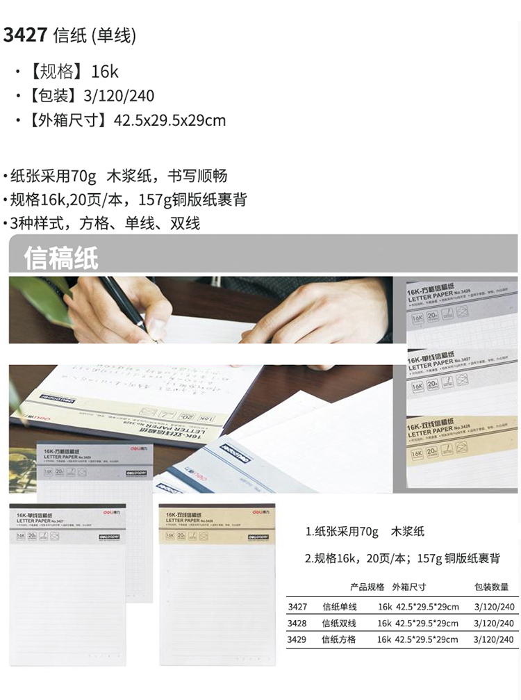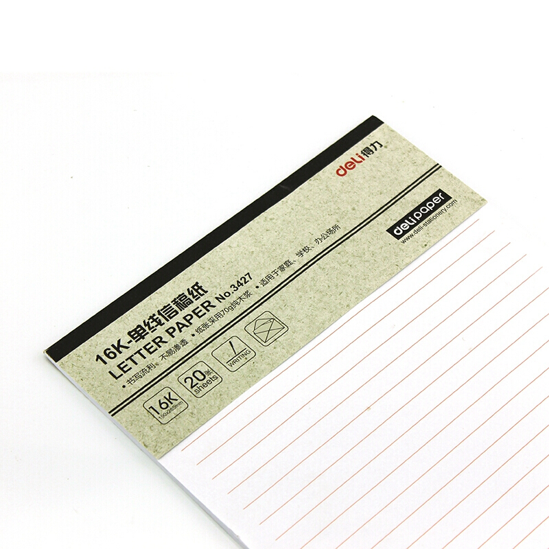 得力信稿纸 单线信纸-70g-266*190mm 得力3427(单位:本)