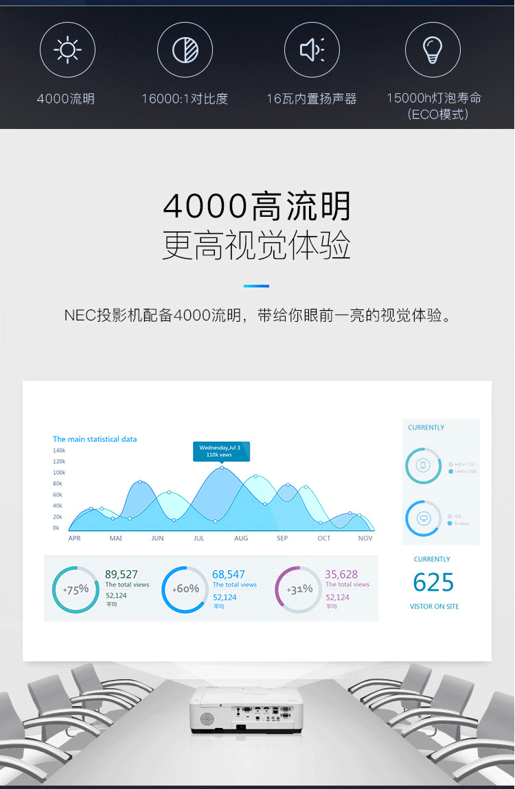 商品名称:NEC NP-CA4200U 投影仪 投影机 投影 办公(4000流明 四点几何校正 WUXGA分辨率)