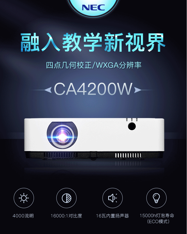 投影 NEC NP-CA4200W 投影仪 投影机 商用 办公(4000流明 四点几何校正 WXGA分辨率 )