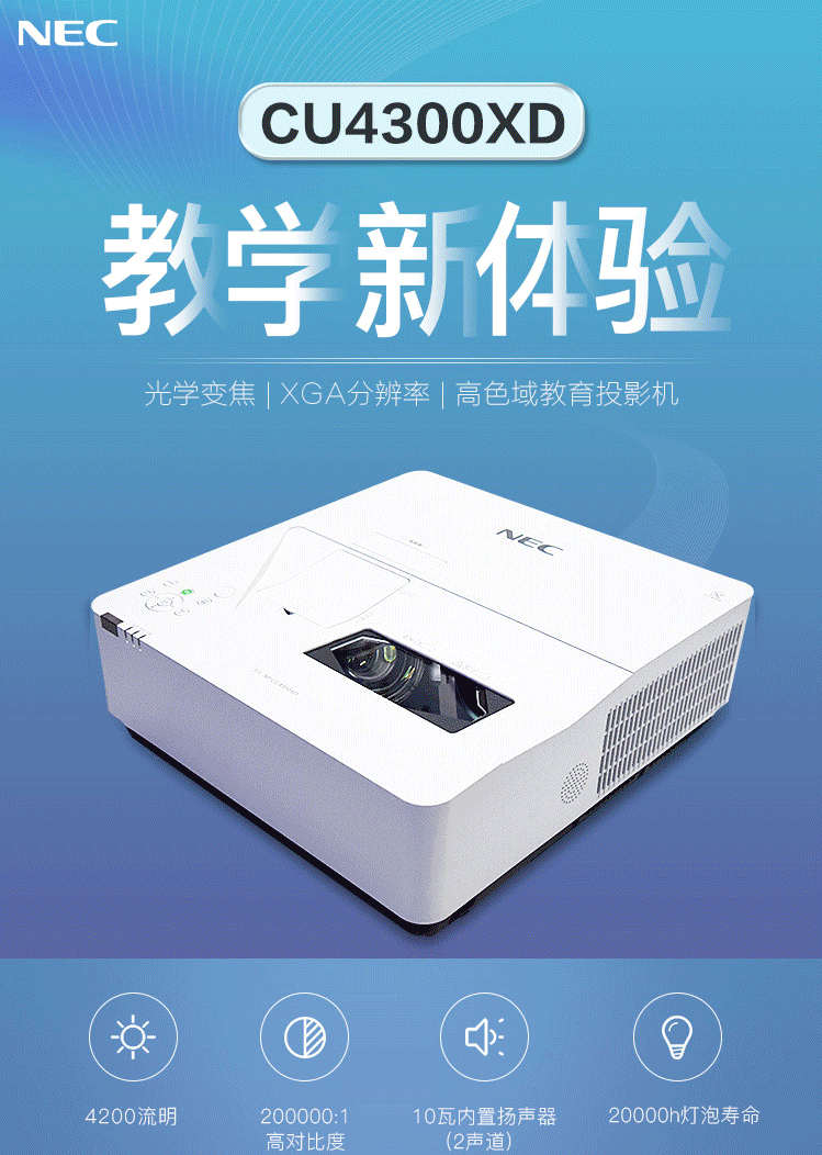 NEC NP-CU4300XD 投影仪 投影机 商用 办公(4200流明 超短焦投影)