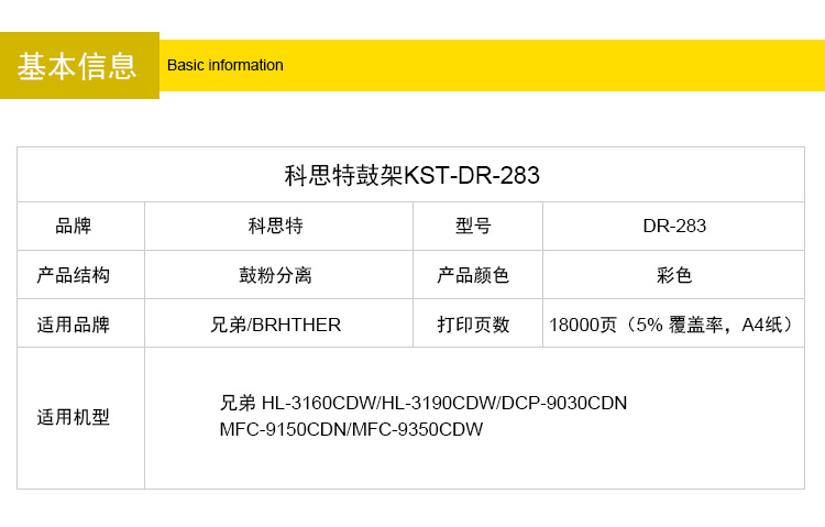 商品名称:科思特 DR283/DR287鼓架 适用兄弟HL-3160CDW/HL 3190CDW/DCP 9030CDN MFC 9150CDN MFC 四色通用专业版