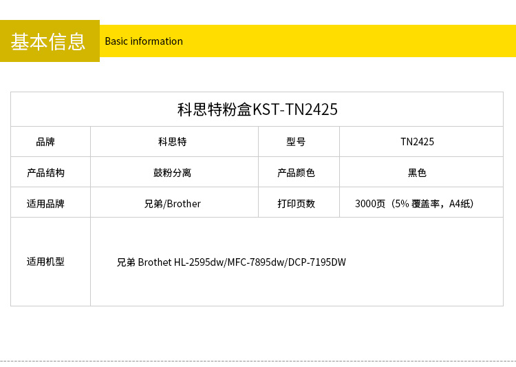 科思特 TN2425粉盒 适用兄弟 HL2595dw MFC 7895dw DCP 7195DW 专业版