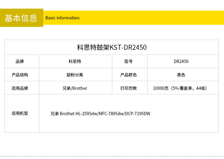 科思特 DR2450鼓架 适用兄弟 HL2595dw MFC 7895dw DCP 7195DW 专业版