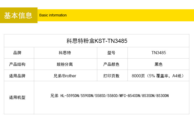 商品名称:科思特 TN3485粉盒 适用兄弟HL-5595DN 5590DN 5585D 5580D MFC 专业版