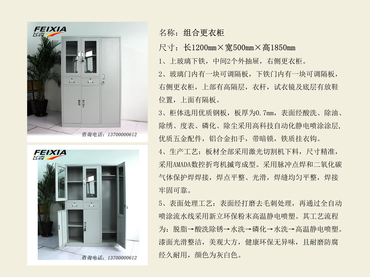 商品名称:五门组合平开更衣柜 文件柜 储物柜 铁皮柜 资料柜 办公柜子 (长1200X深500X高1850mm)