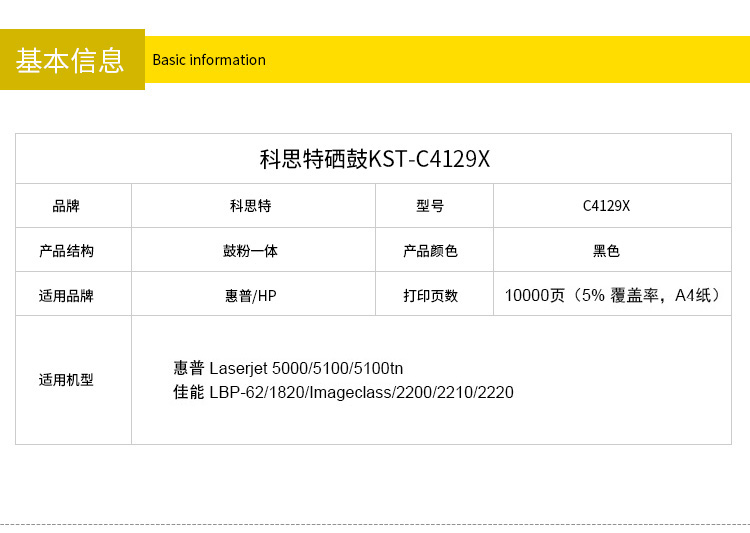 商品名称:科思特 C4129X硒鼓 大容量 适用惠普 5000 5100 5000n 5100le LaserJet 专业版