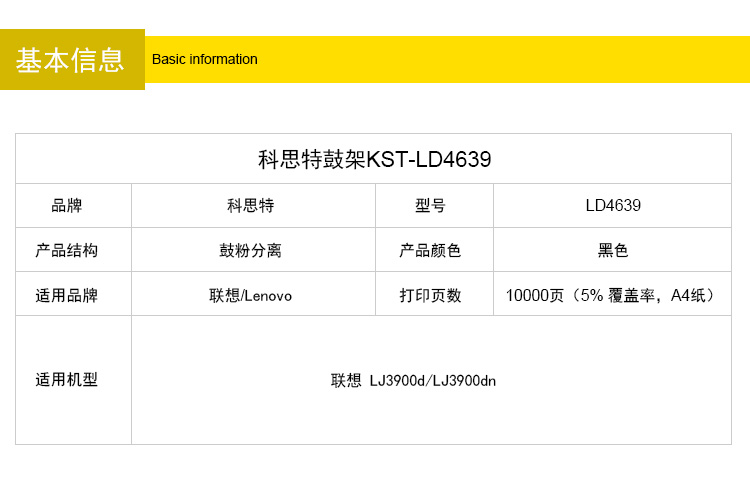 商品名称:科思特 LD4639鼓架 适用联想LJ3900d LJ3900dn Lenovo 4639 专业版