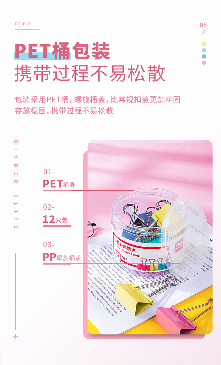得力(deli) 32mm彩色长尾夹票夹 3#金属燕尾夹票据夹子 8553 (24只/桶)