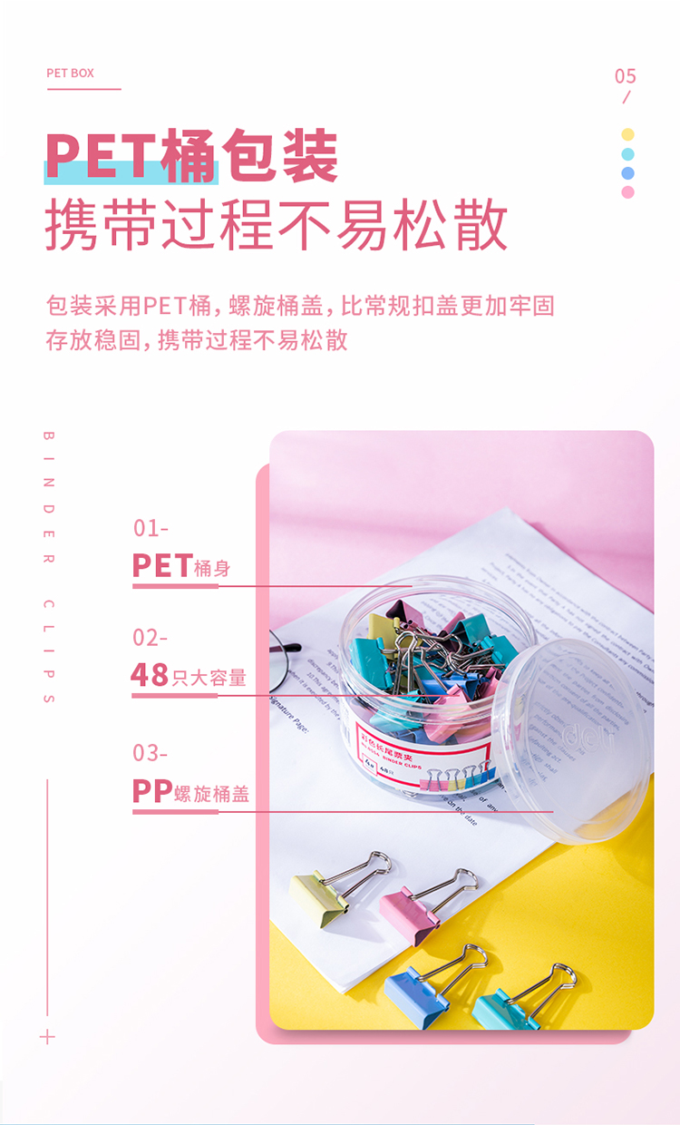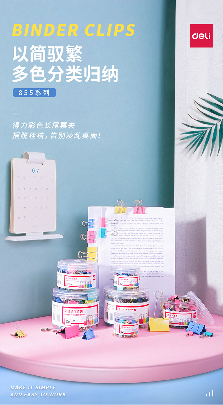 得力(deli) 25mm彩色长尾夹票夹 4#金属燕尾夹票据夹子 8554 (48只/桶)