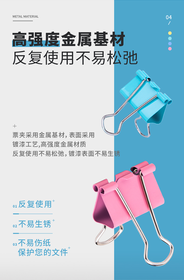 商品名称:得力(deli) 25mm彩色长尾夹票夹 4#金属燕尾夹票据夹子 8554 (48只/桶)