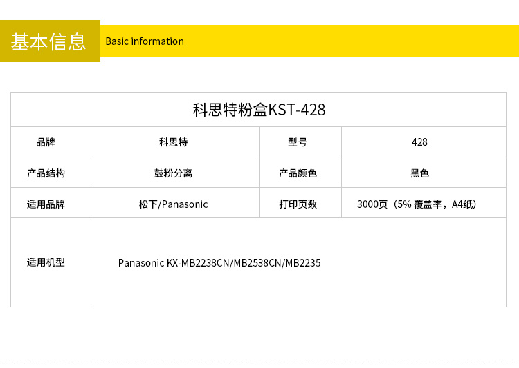商品名称:科思特 428粉盒 适用松下 KX-MB2238CN MB2538CN MB2235 专业版
