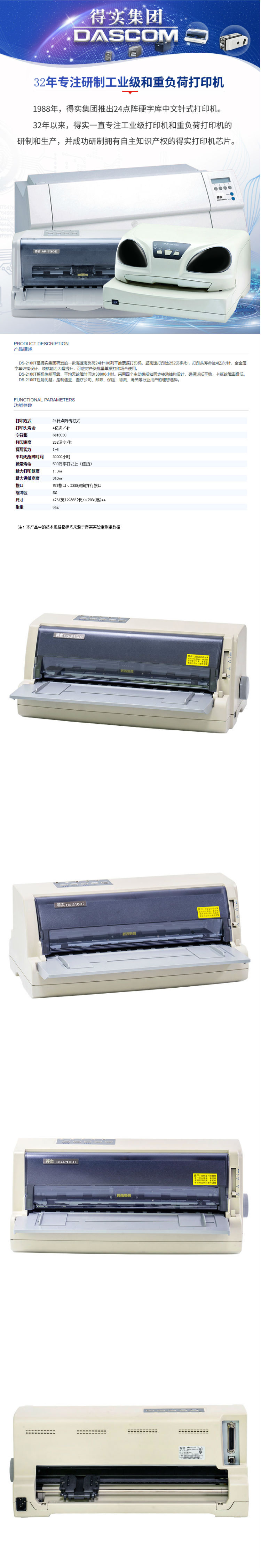 商品名称:得实(Dascom)DS-2100T 高速高负荷24针106列平推票据打印机