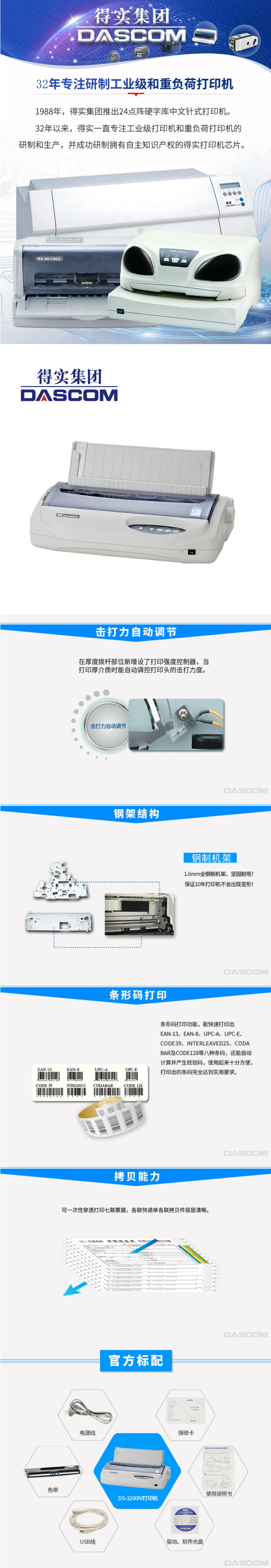 商品名称:得实(Dascom)DS-3200IV 多功能超高速24针宽行报表打印机