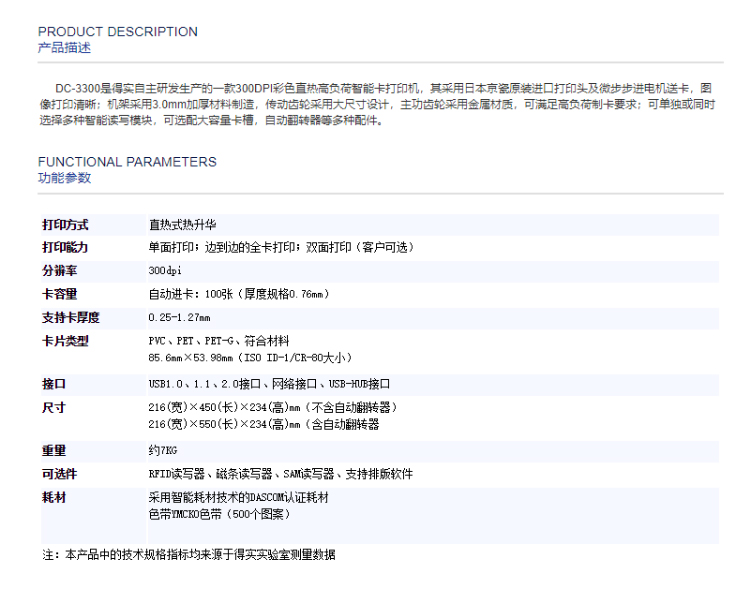 商品名称:得实(Dascom)DC-3300 300DPI彩色直热高负荷智能卡打印机