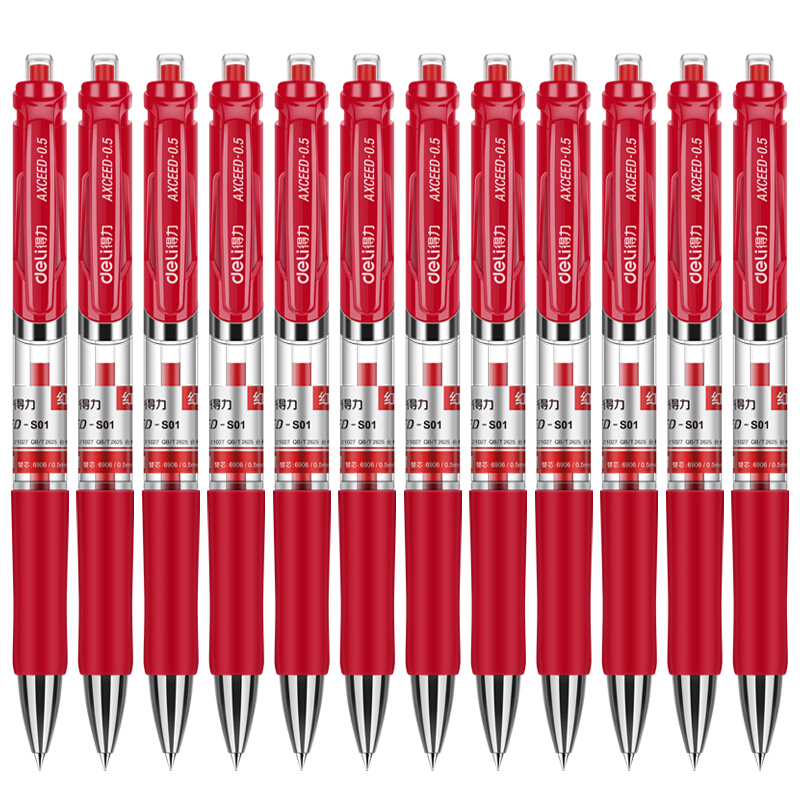 得力S01中性笔 按动碳素笔 0.5mm弹簧头 红色 (单位:盒)