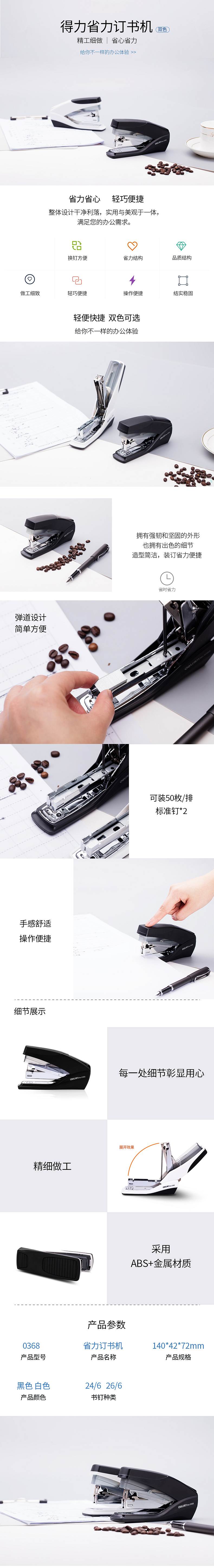 商品名称:得力订书机 0368省力订书机 一指可按(白色)