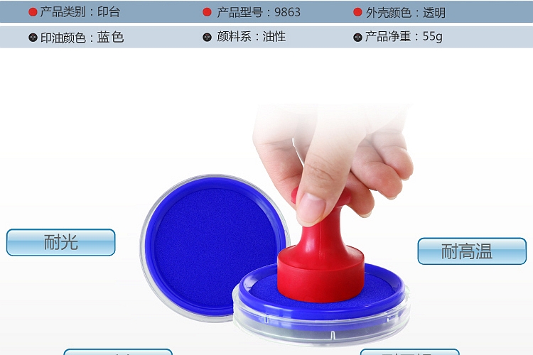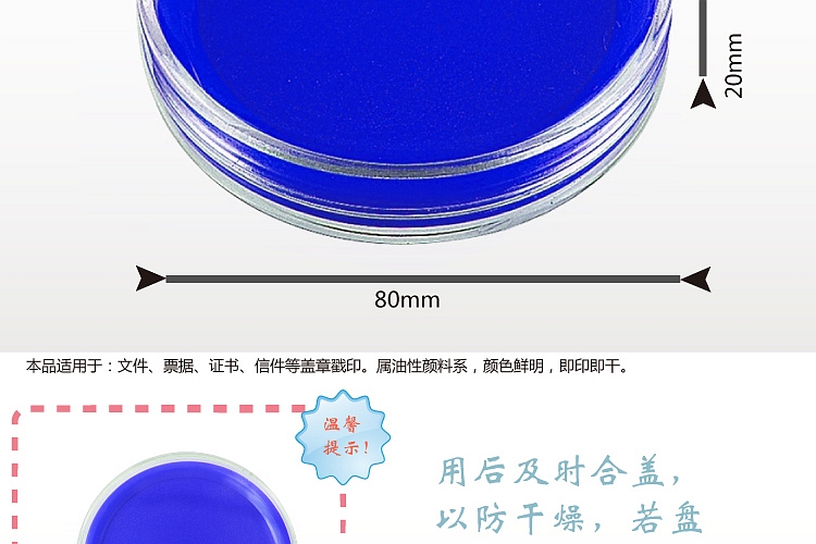 商品名称:得力(deli)φ80mm圆形快干印台印泥 9863蓝色(单位:个)