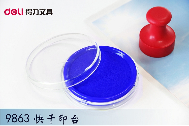 得力(deli)φ80mm圆形快干印台印泥 9863蓝色(单位:个)